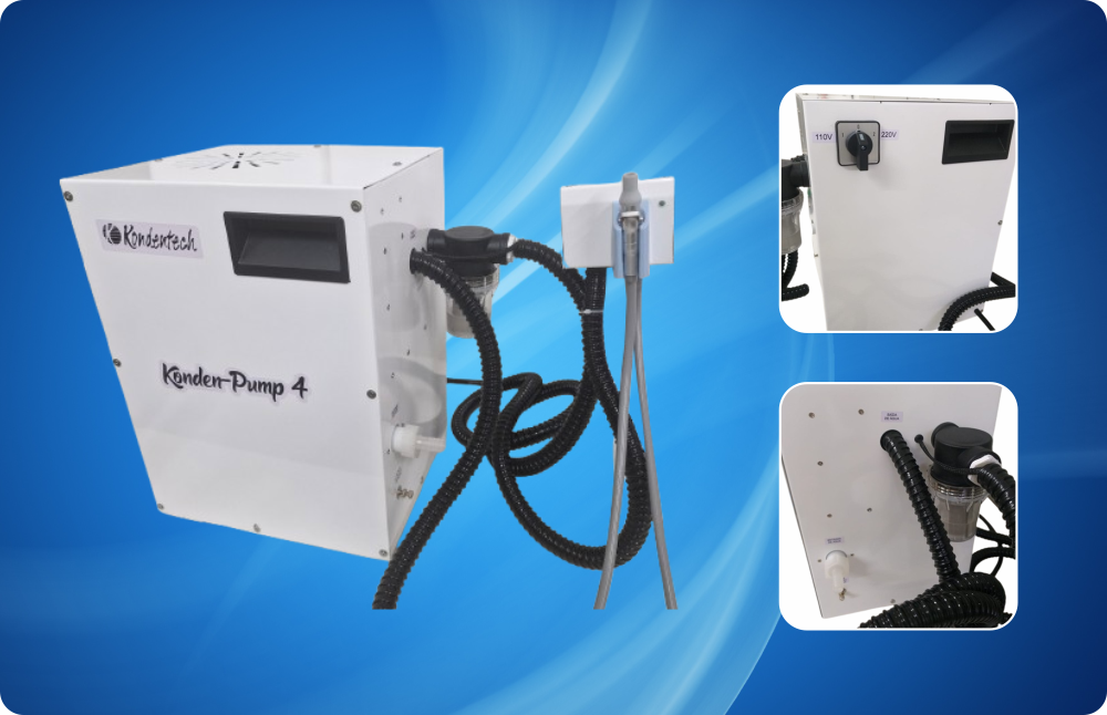 Fabricada em liga de aço inox, Permite operar até 4 consultórios simultaneamente. Motor de 1HP. Conta com protetor térmico no motor 130 graus centígrados.