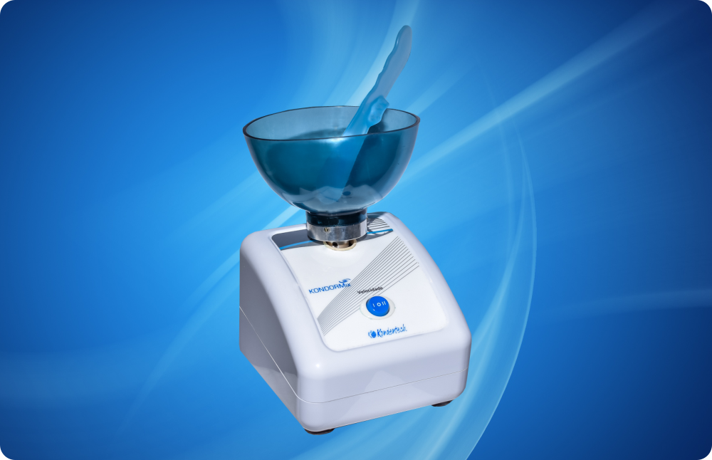 Misturador mecânico para alginatos e gessos utilizado na preparação de moldes dentários. Fácil de usar. Proporciona redução do tempo de preparo da mistura devido à sua velo-cidade constante. Com duas velocidades, garante uma mistura uniforme dos elementos livre de bolhas de ar. Utiliza cuba misturadora flexível e espátula para o procedimento. Fácil limpeza. Bivolt.