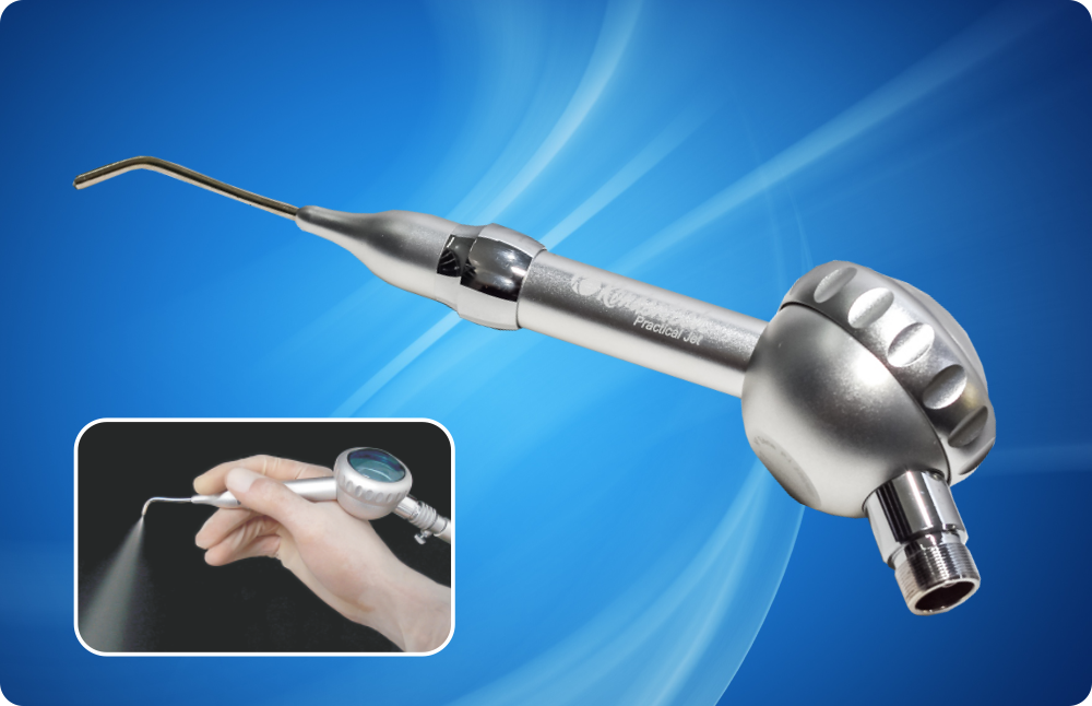 Jateamento de superfícies através de um sistema de geração de partículas de bicarbonato de sódio em suspensão, inseridas em um jato de ar comprimido. Adaptável ao encaixe Borden do equipo. Ponteira giratória 360º, removível e autoclavável 121º C. Garantia de 06 (seis) meses. Registro Anvisa nº 80022409016.