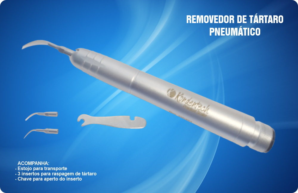 Peça de mão para remoção de tártaro, que oferece excelente acabamento superficial, facilitando a assepsia e desinfecção com baixo nível de ruído. Acoplável ao terminal de alta rotação com movimento elíptico da ponta muito eficiente na remoção dos tártaros. Garantia de 06 (seis) meses.